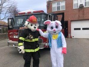 MAYNARD – On April 12, 2020, Easter Sunday, Maynard Firefighters helped bring the Easter Bunny through town to celebrate the holiday. In this time of COVID-19, the Maynard Fire Department assisted in brightening this Spring Holiday by hopping throughout the Town. The hour long parade route allowed residents to keep social distance while seeing a special visitor. Captain Parr drove the Easter Bunny and Sparky the Fire Dog through Town Sunday. “We thought it was important to mark the day. This parade route gave people an option near home to see the Easter Bunny. The public has been very supportive of first responders and medical personnel. This was a way for us to give back a happy memorable moment in a time of uncertainty. It was great to see residents gather in their cars and at the end of their driveways. It looked like the kids really appreciated the surprise.”