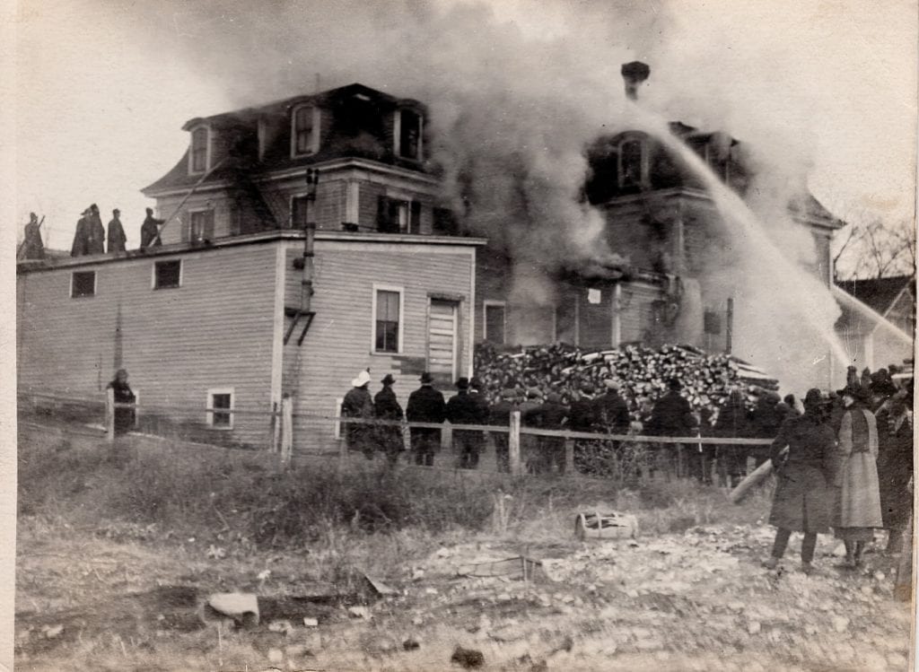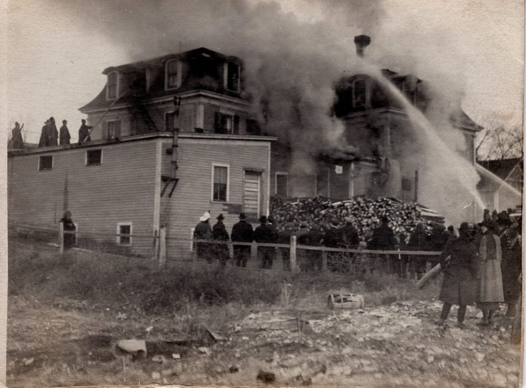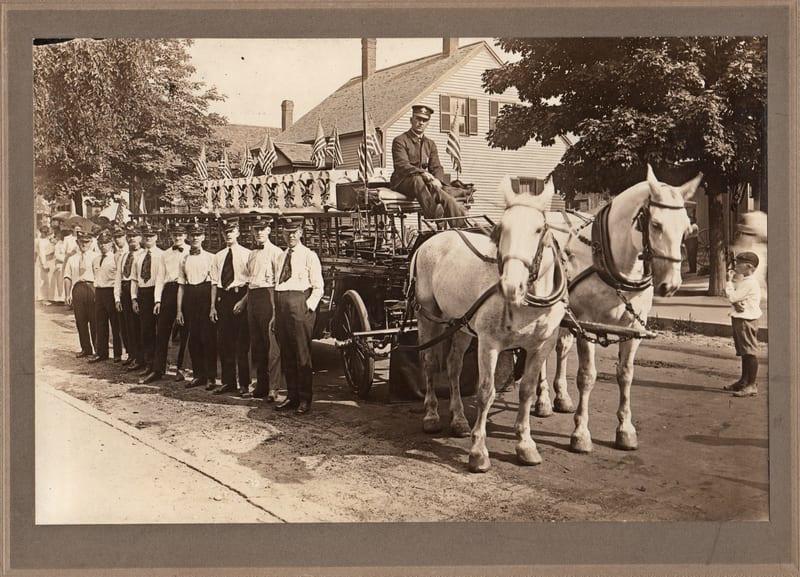 Locally, the Maynard Fire Department was first organized in 1890 after a special town meeting was held. By March of that year a Hose Company comprised of 15 men was organized. The first “Hose and Ladder Wagons” were delivered in May and August of 1890, and a new fire station was occupied by January of 1891 on Nason Street. In 1903 Tony Collins was appointed as the permanent driver of the hose wagon that was then being pulled by a single horse, with the ladder wagon being pulled by a pair of horses.